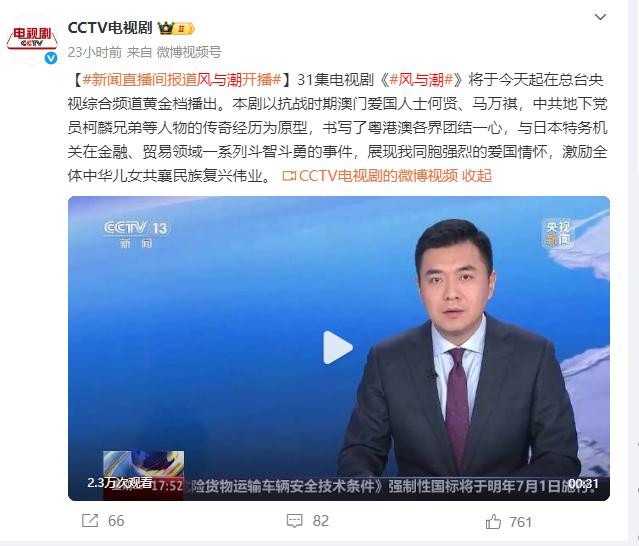 12月9日电视剧《风与潮》开播,打破了港片大佬风靡全国的定律。