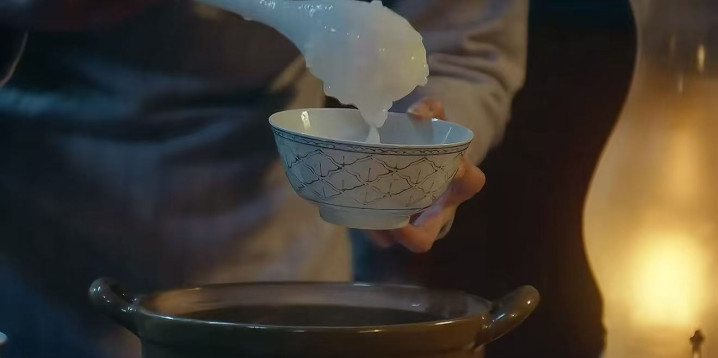 她一边淡淡的搅动锅里的白粥一边说道:“今天的莲子没取芯。”