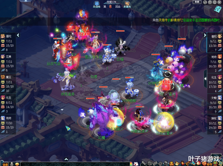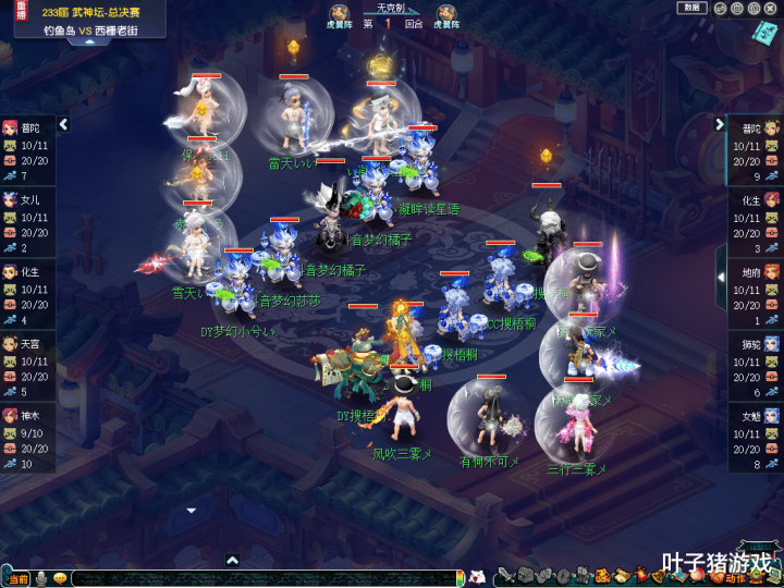 从出战阵容来看,钓鱼岛选用了“力普陀、化生、地府、狮驼、女魃”组成的三攻体系,这套阵容的好处在于输出高、长线战斗能力强,西栅老街则是选用了“力普陀、女儿、化生、天宫、神木”组成的双封面伤体系,这套阵容的好处在于控制能力强、面伤足。