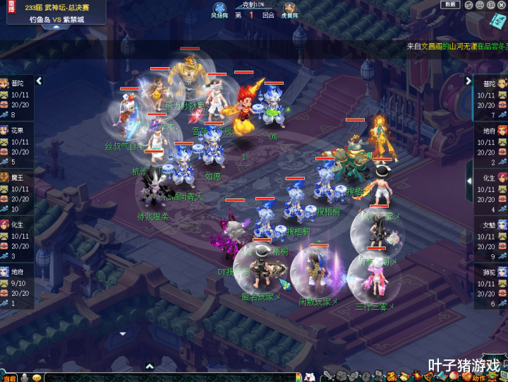 从出战阵容来看,钓鱼岛选用了“五庄、花果、双咒师、化生”组成的三攻体系,这套阵容的好处在于抗性强、单点爆发高,曲阜孔庙则是选用了“力普陀、花果山、神木林、化生、地府”组成的三攻体系,这套阵容的好处在于面伤足、点杀强。