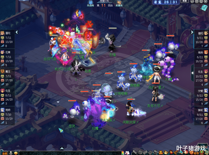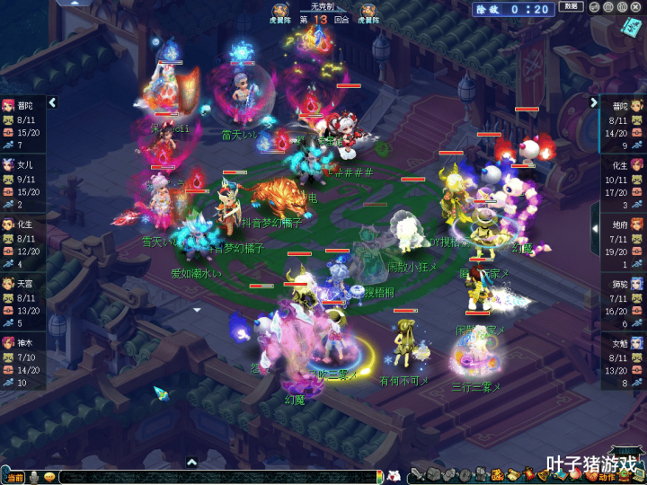 比赛前期,钓鱼岛采用了力压输出点的打法,西栅老街则是选用了清宠策略。就比赛情况来看,由于钓鱼岛拿到物理一速,不仅导致西栅老街的物理输出很难出手,还帮助女魃墓构建了“双幻魔”阵型。比赛第13回合,钓鱼岛凭借力普陀的进攻成功压倒西栅老街神木林后,就彻底封锁了对手清幻魔能力,逐渐形成“以多打少”的优势。
