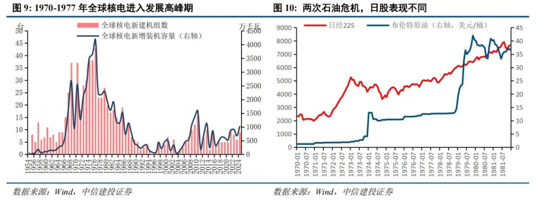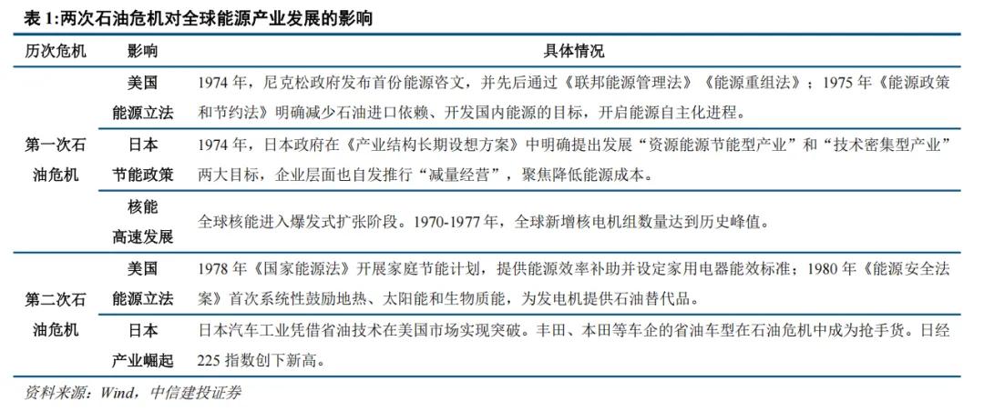 新能源发电、储能与核电产业有望加速发展。回顾第一次和第二次石油危机历史,化石能源短缺在全球范围内推动了能源来源多元化、新能源和节能技术和产业的高速发展。第一次石油危机期间,全球核电产业迎来发展高峰,而今年3月10日,中国宣布加入《三倍核能宣言》(由法国等22个国家共同发起,核心目标是到2050年将全球核能装机增至2020年的三倍)。第二次石油危机期间,日本汽车凭借其省油车型热销美国,当前中国新能源正以全产业链优势获得全球青睐。