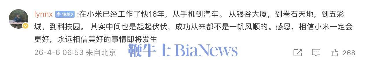 随后,小米手机BSP工程师刘霖在评论区表示,“在小米已经工作了快16年,从手机到汽车。 从银谷大厦,到卷石天地,到五彩城,到科技园。 其实中间也是起起伏伏,成功从来都不是一帆风顺的。感恩,相信小米一定会更好,永远相信美好的事情即将发生。”
